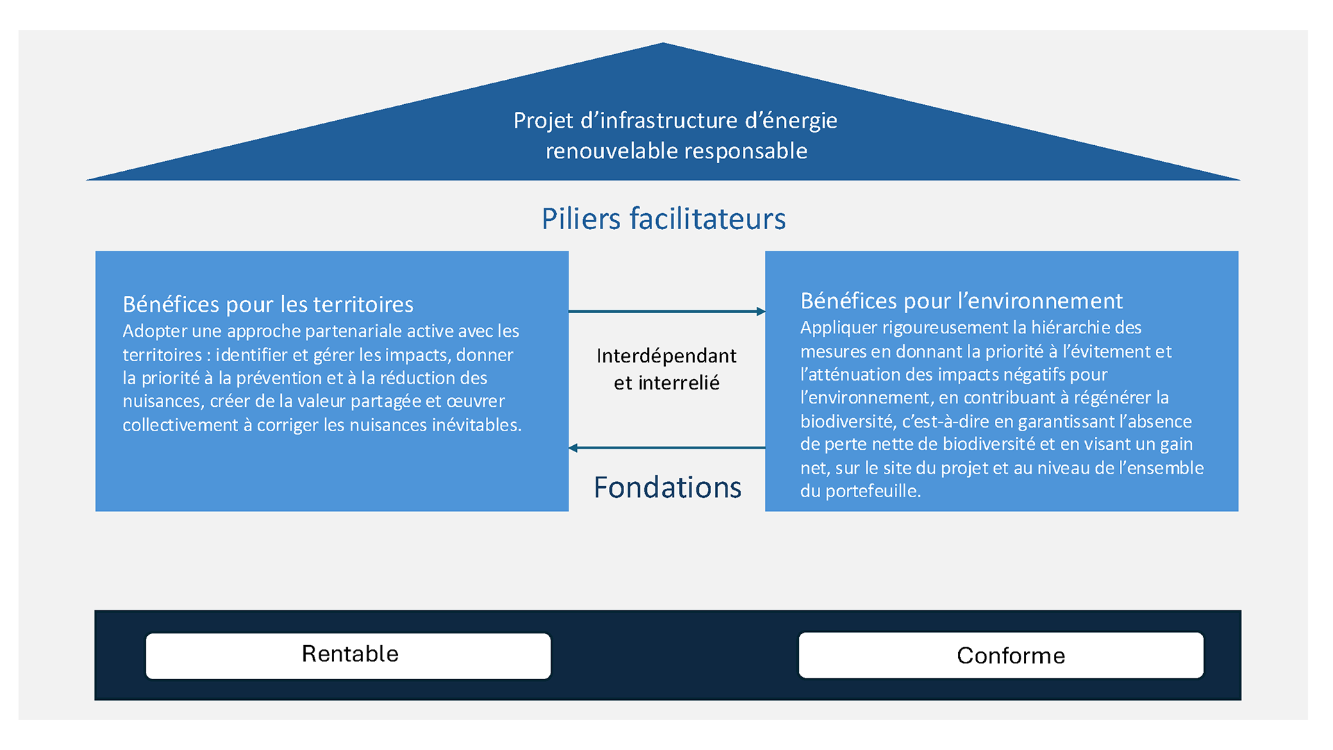 Outre les exigences de rentabilité et de conformité réglementaire, la Coalition estime que les projets d’infrastructures d’énergie renouvelable responsables doivent également apporter une réelle valeur ajoutée aux territoires et à l’environnement.