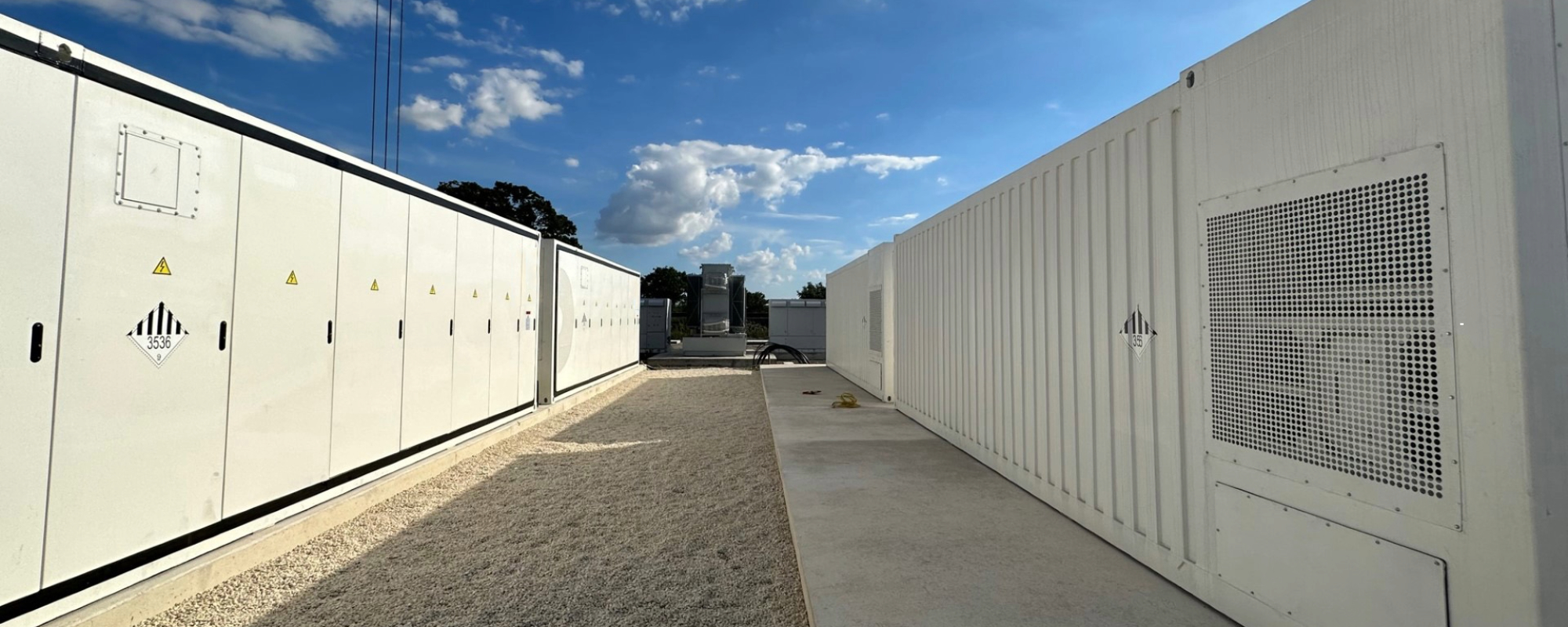 Les conteneurs BESS, où sont logés les composants de la batterie, sont installés sur des fondations en béton entourées de roche concassée, comme les sous-stations électriques.