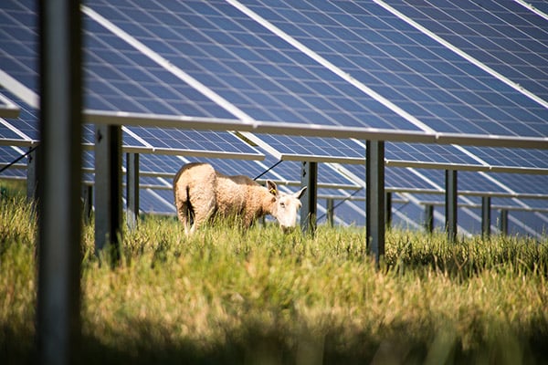 A solar lease enhances the agricultural use of the land. Solar farms are the perfect place to graze sheep, and many landowners find that renting land for solar means they’re able to make the acres generate two streams of revenue – income from the panels and income from a flock. Solar panels provide shade and shelter for sheep, while the secure fencing offers protection from predation and harassment.