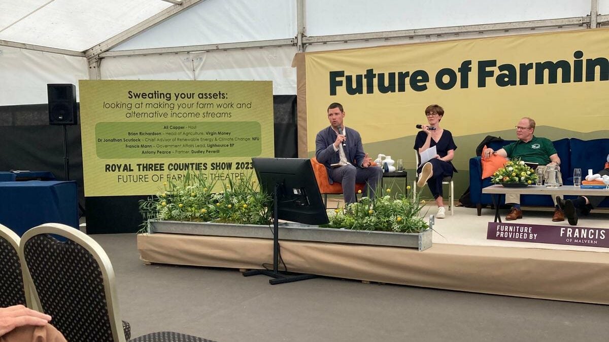 A recent example of the way in which we are working with farming communities is our sponsorship of the Future of Farming Zone at this year’s Royal Three Counties Show. We worked closely with the organisers to create a space where farmers could be inspired and empowered to drive their businesses forward. Since resuming our membership with the NFU earlier this year we’ve been working closely with them to drive forward best practise and so were proud to take part in a panel speaking discussion with Jonathan Scurlock of the NFU and other sponsors of the Future of Farming Zone covering solar’s role in farm diversification.