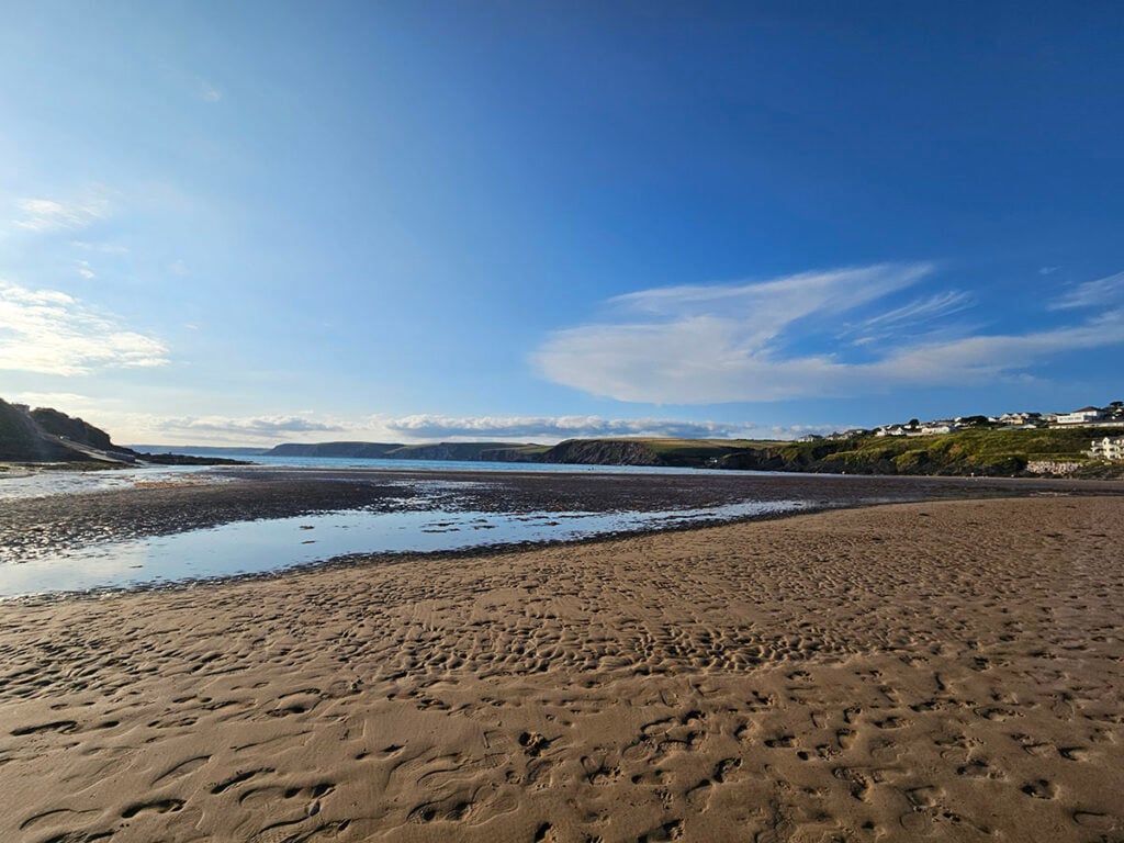 “Lovely day in the sun at Bigbury beach in South Devon with friends. Spot the sea tractor in the photo that got us to the pub on Burgh Island during high-tide.”