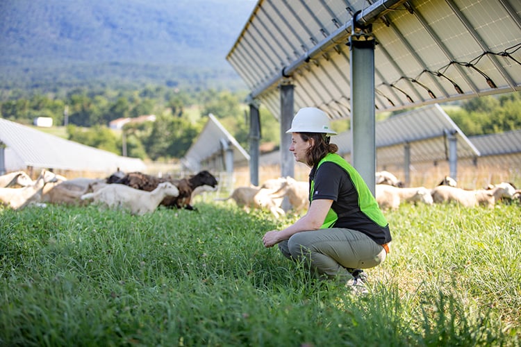 - Planting vegetation under and around the solar panels, with a seed mix customized for the local area. These seed mixes help to increase biodiversity and improve soil health.