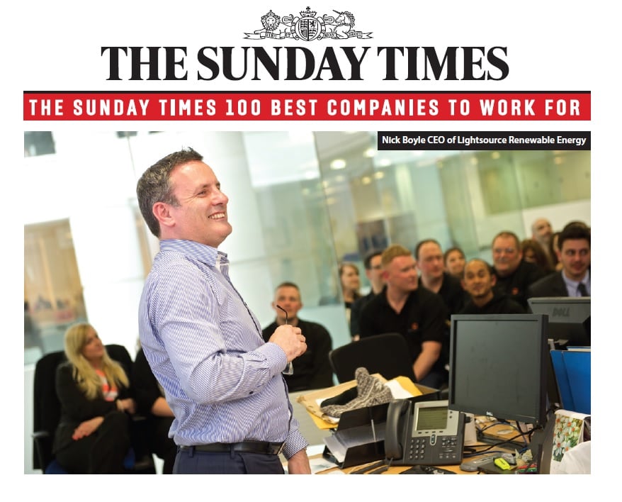The Sunday Times “100 Best Companies” survey has named Lightsource bp with an “outstanding” rating…