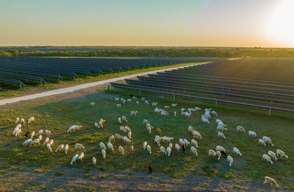 Sheep grazing on solar farms combines agriculture with solar electricity generation, enabling livestock to graze and crops to grow alongside and beneath solar panels.