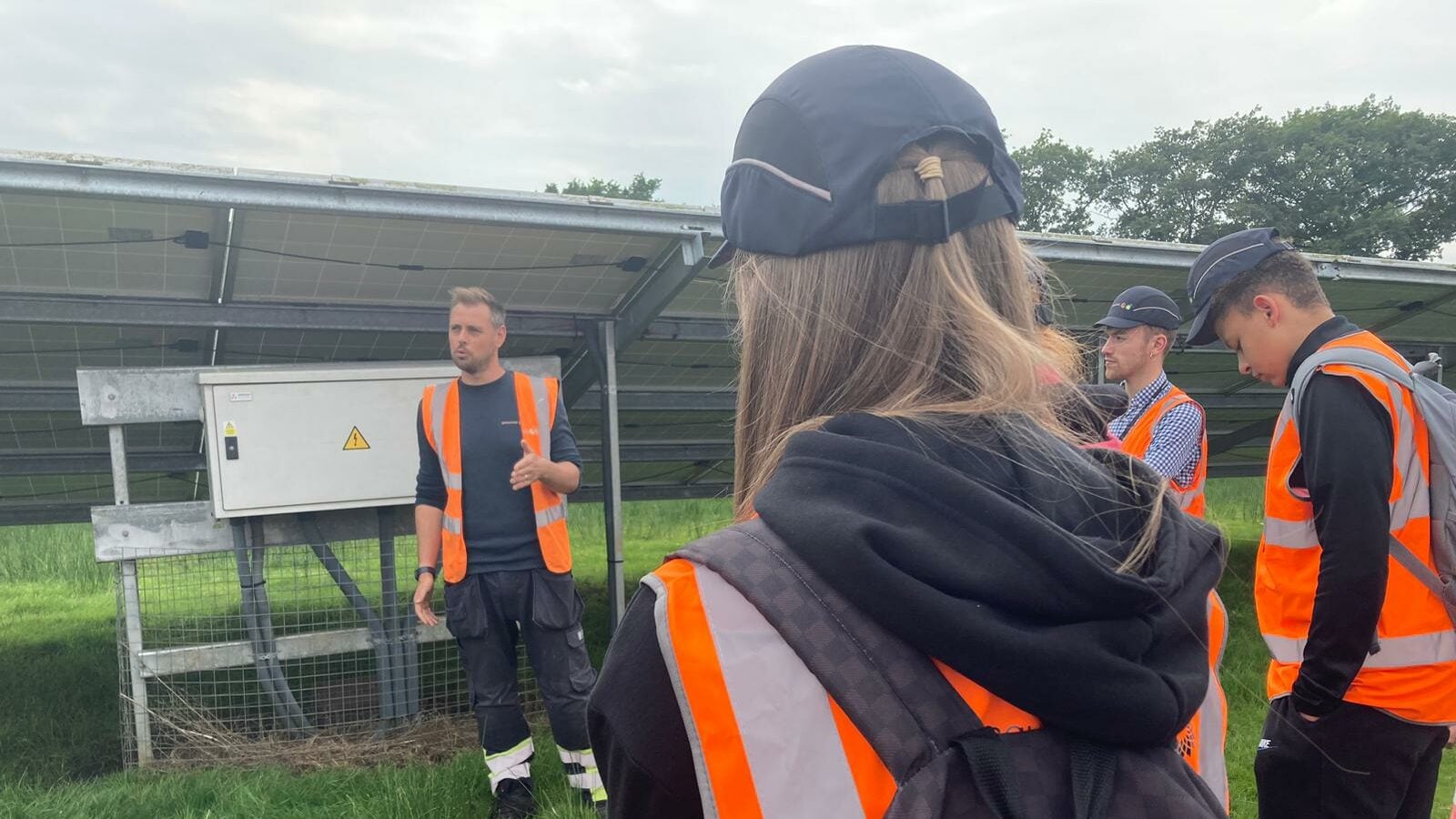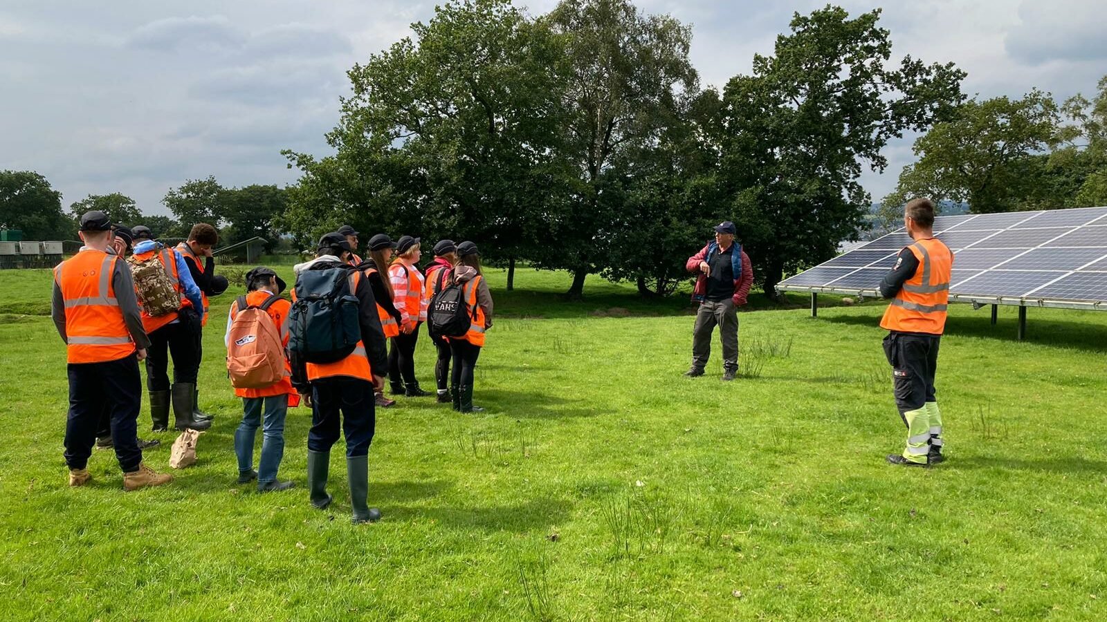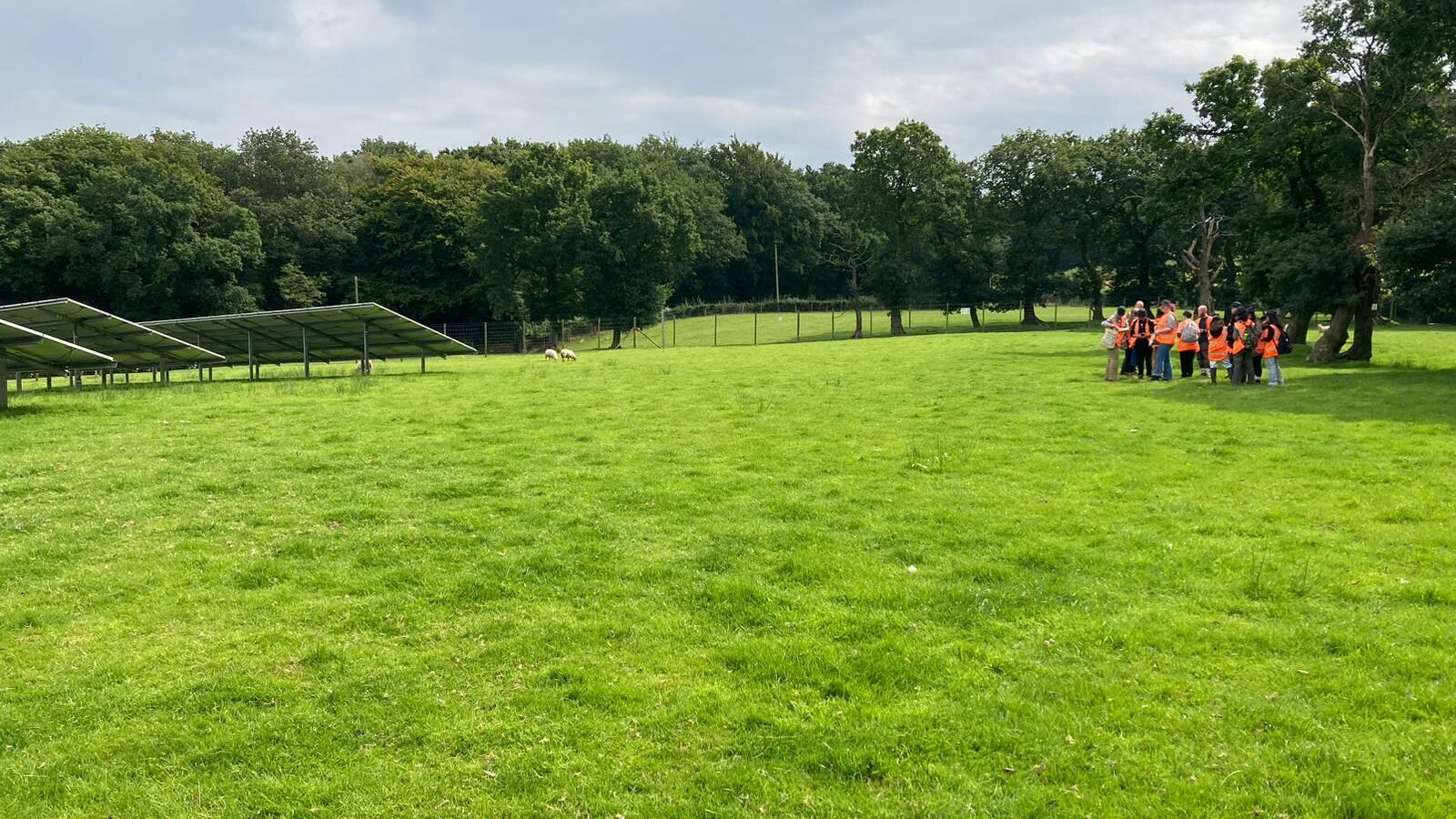 We had good weather, with a slight breeze amid a week of blistering sunshine, and split into two groups to walk through the site. The students received first-hand accounts of how solar panels work, as well as an introduction to the importance of renewables to the UK energy mix, and a whistle-stop tour of the solar development process. We answered questions about around choosing sites for solar, health and safety on our projects, and stopped time and time again to take photos with the sheep grazing in and around the panels.