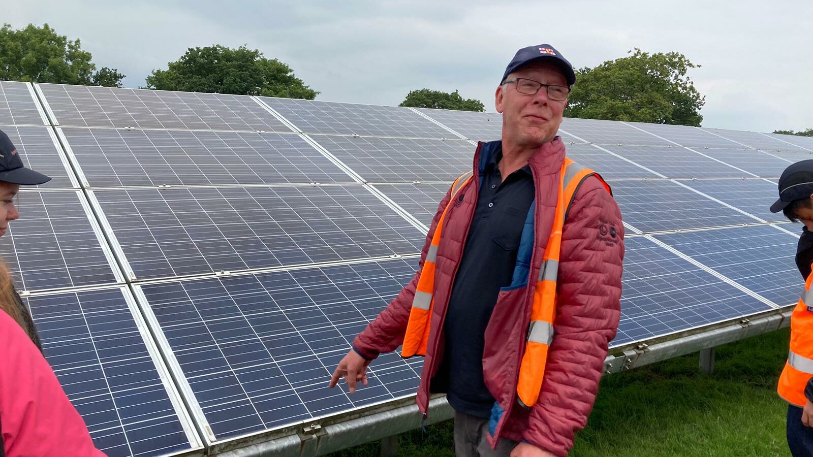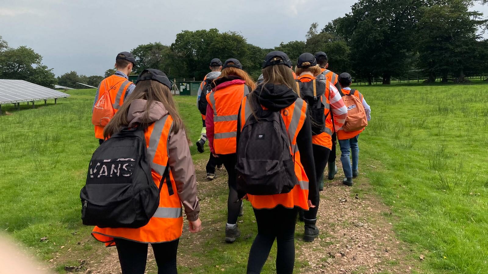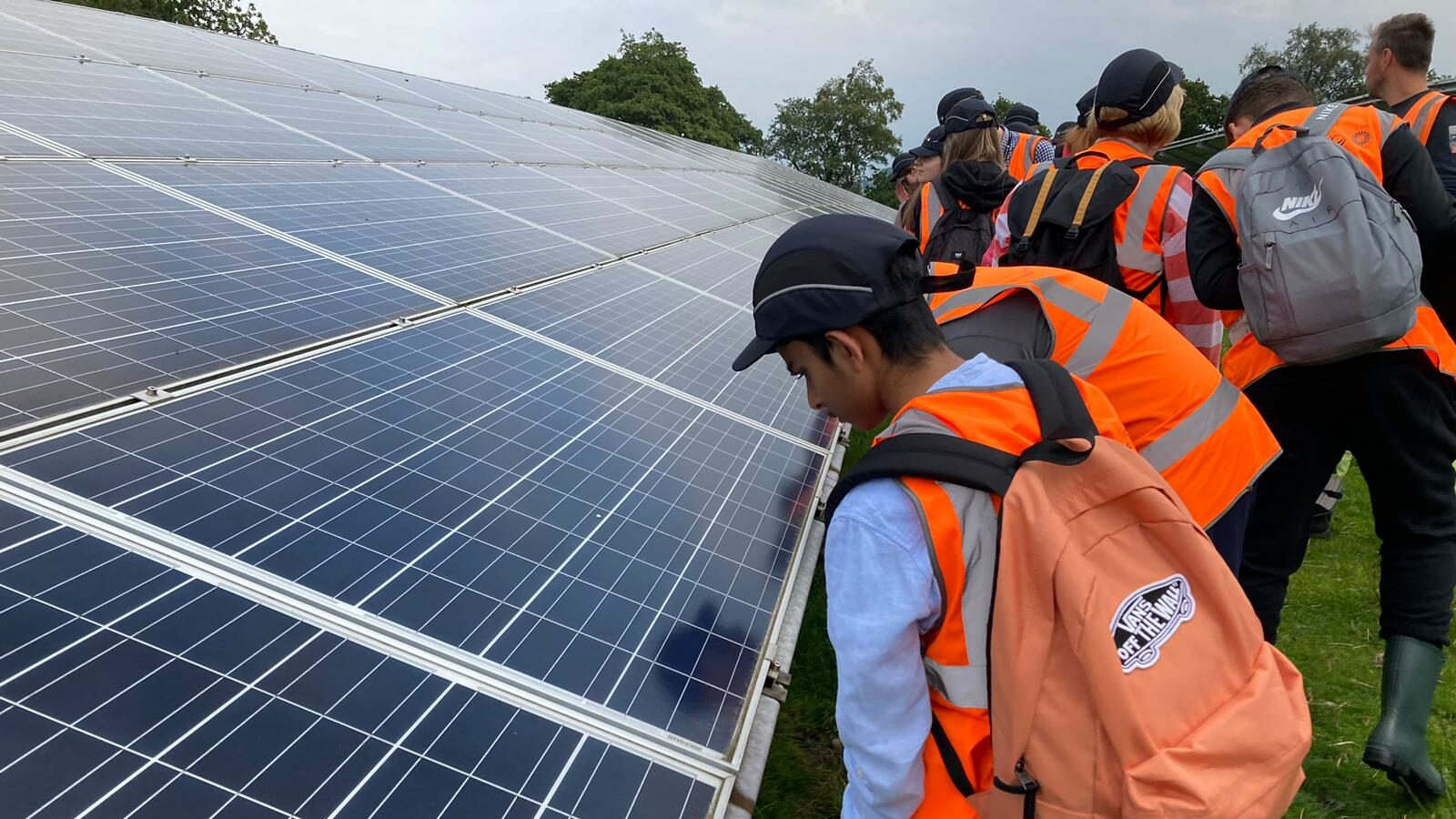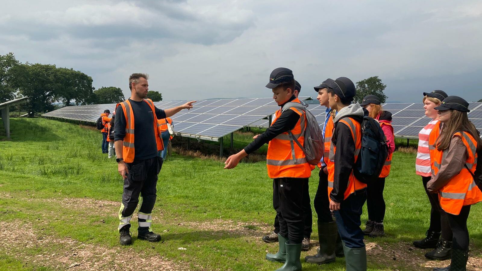 We had good weather, with a slight breeze amid a week of blistering sunshine, and split into two groups to walk through the site. The students received first-hand accounts of how solar panels work, as well as an introduction to the importance of renewables to the UK energy mix, and a whistle-stop tour of the solar development process. We answered questions about around choosing sites for solar, health and safety on our projects, and stopped time and time again to take photos with the sheep grazing in and around the panels.
