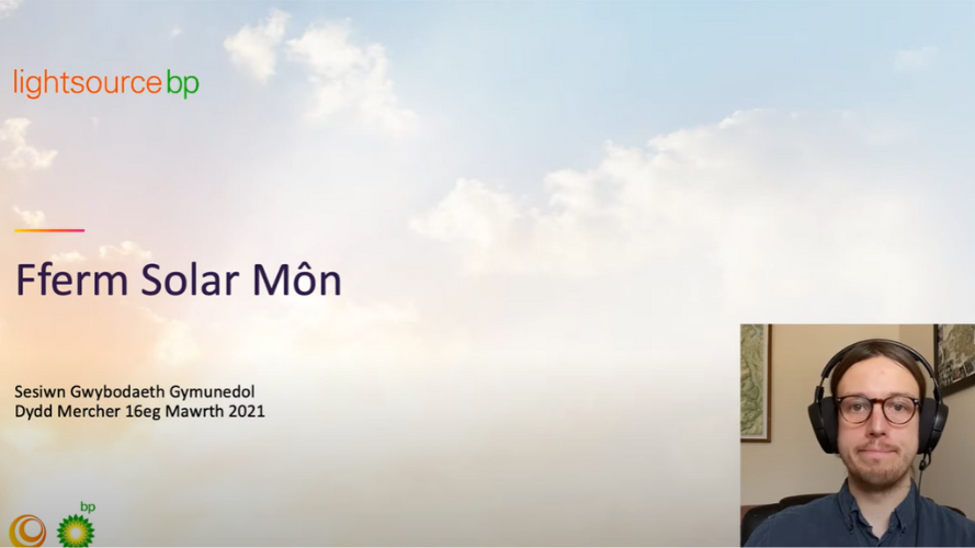 Information presentation, in Welsh, for our Môn Solar Farm proposal, recorded for the virtual event that took place on 16th March 2021.