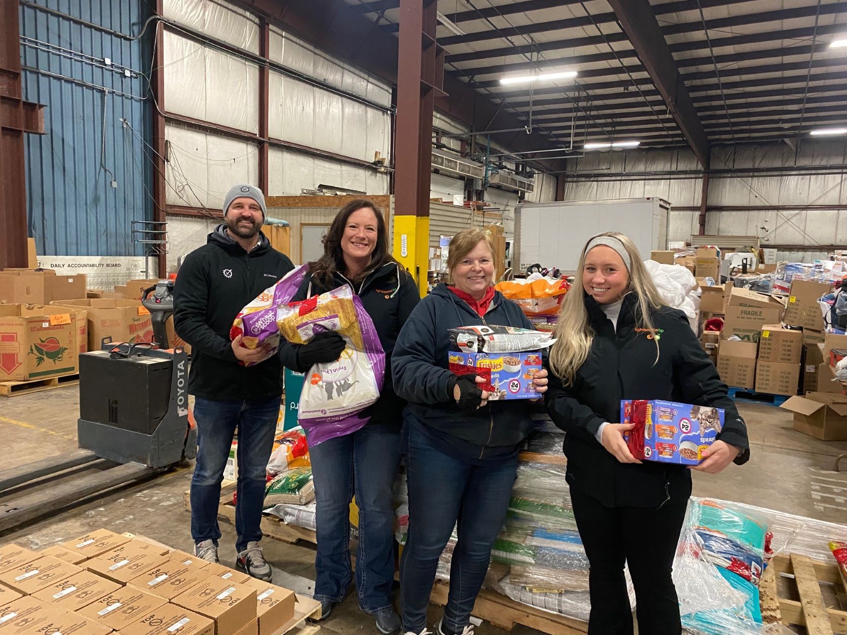 Lightsource bp team members volunteered at AGAPE in February 2023. The team sorted and stacked pet food.