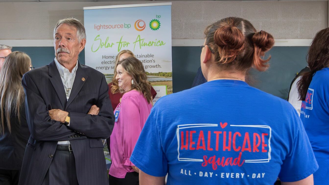 Community hospital check presentation, job fair kick off Lightsource bp Jones City Energy Center in Jones County, Texas