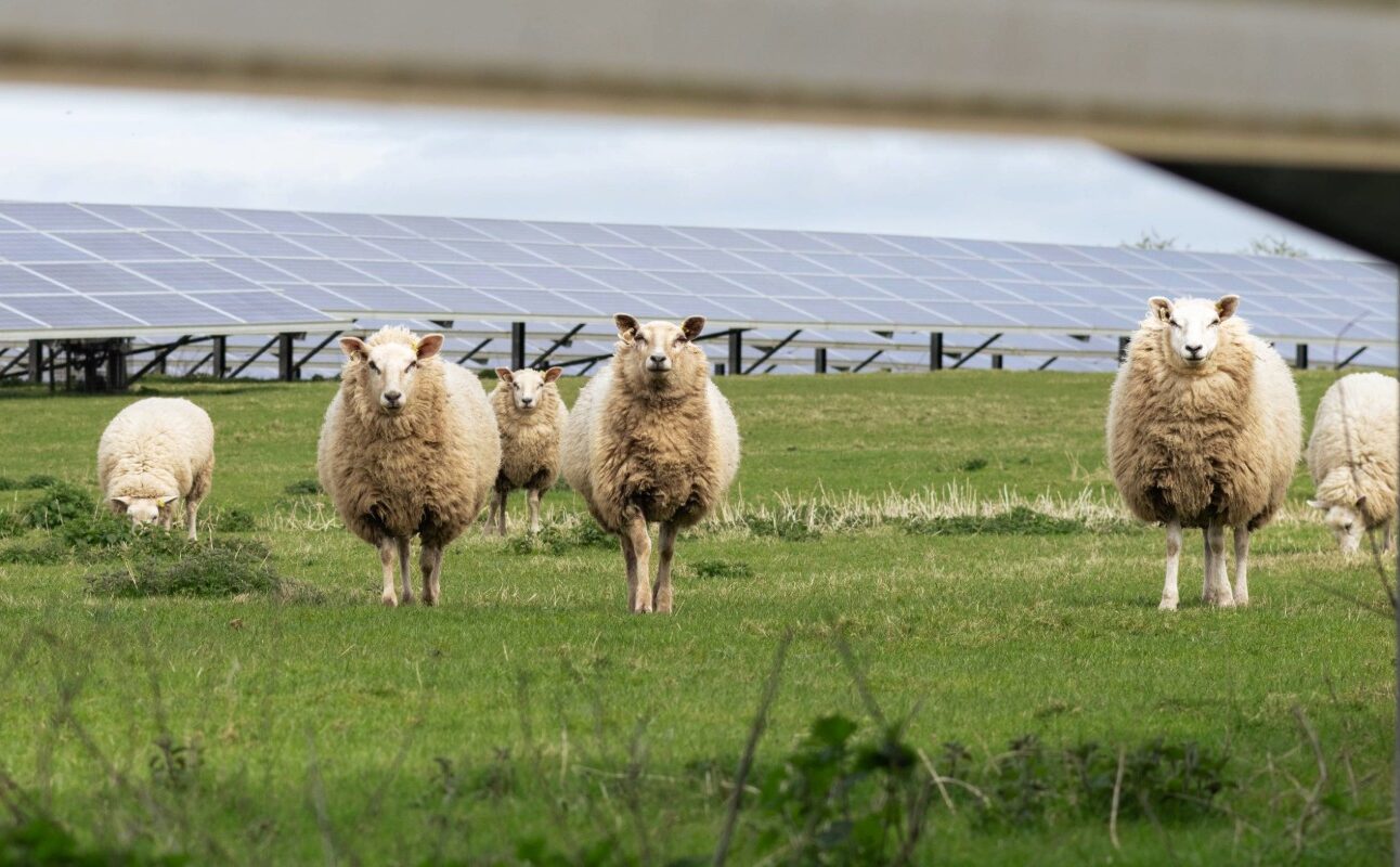 Sheep grazing on solar farms combines agriculture with solar electricity generation, enabling livestock to graze and crops to grow alongside and beneath solar panels.
